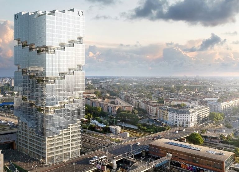 Type: High-rise residential tower (mixed-use with public ground-floor functions).